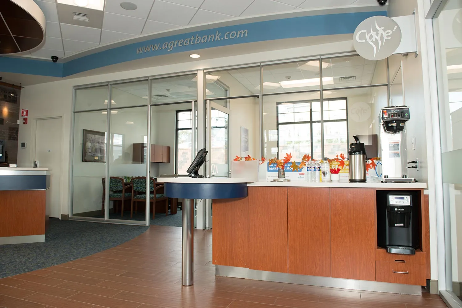 Our architect designed the exterior and interior of this eye-catching branch, which was tailored to the bank’s new color standard, while adding a dash of distinctive style.
