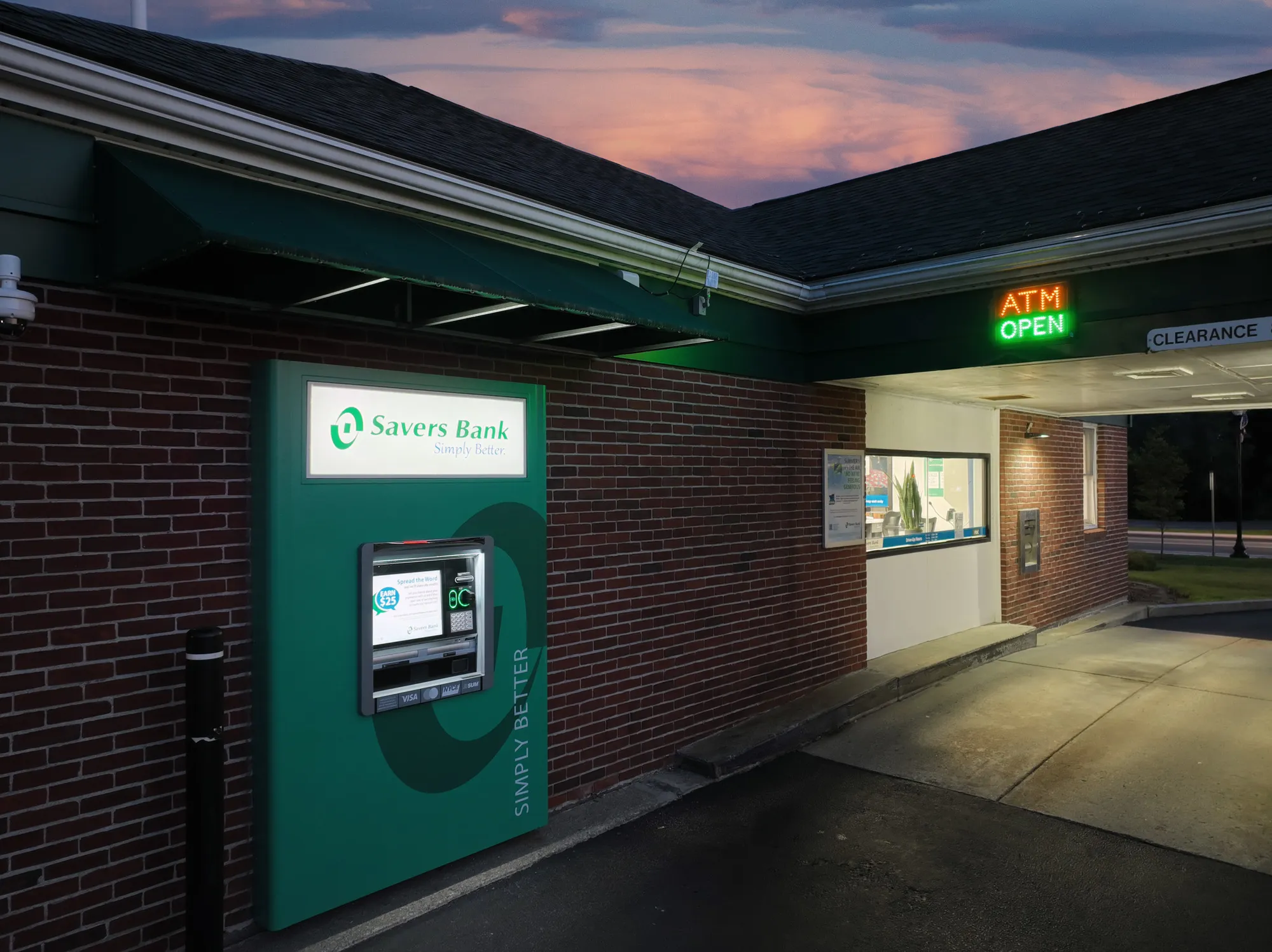Branch transformation integrating historic imagery, illuminated branding, exterior façade towers, custom window film, and refined finish palette.