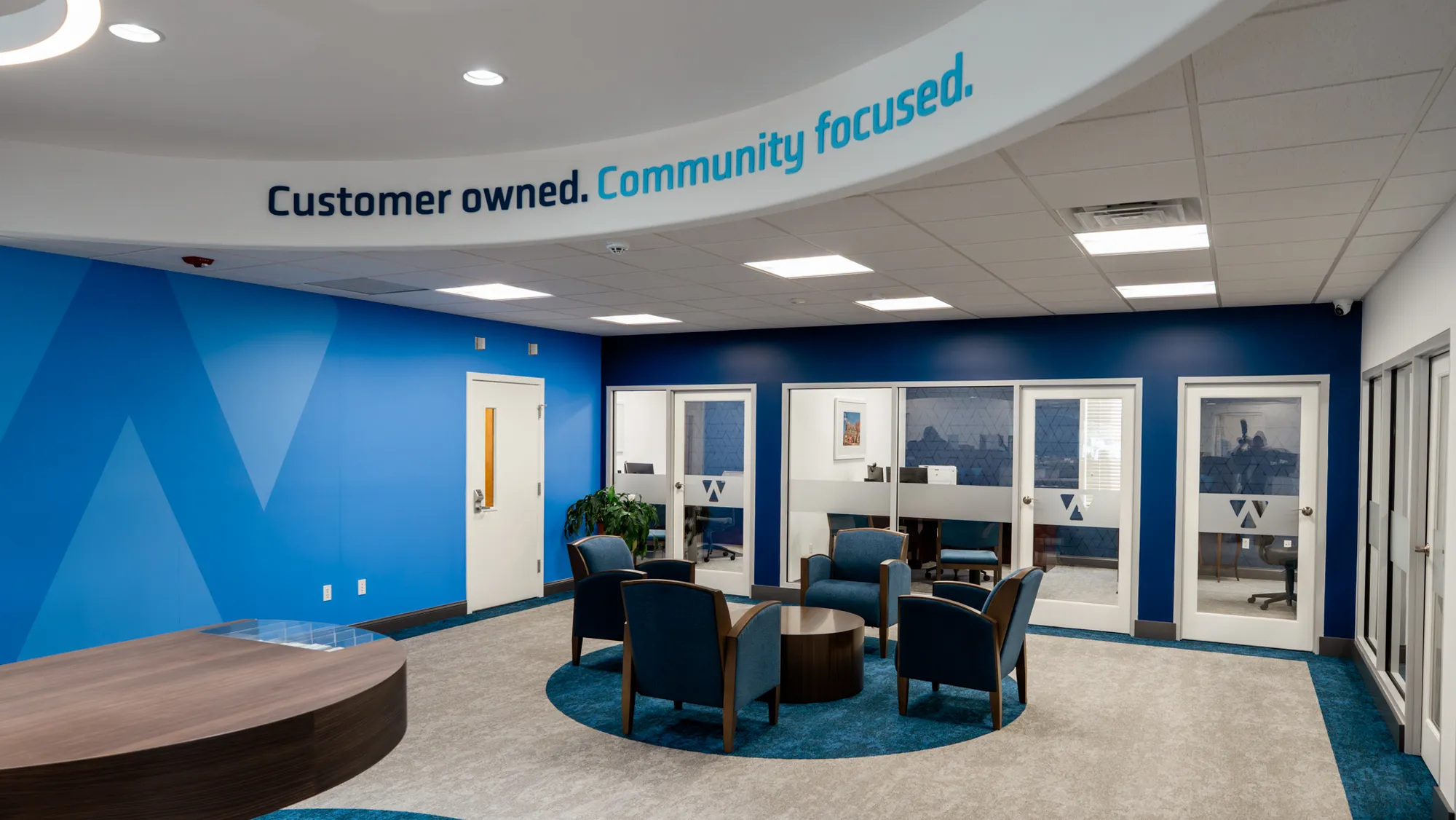 Brand implementation across branch network. Included custom branding elements, teller accents, high-end wall coverings, and finishes consistent with previous renovations.